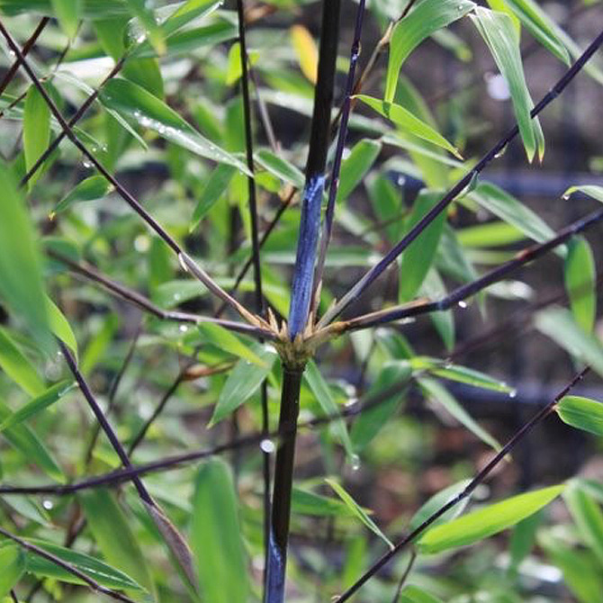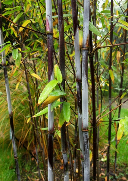 Mimo niezbyt wysokiego pokroju bambus posiada stosunkowo grube pędy o charakterystycznym przepięknym kolorze pastelowo niebieskim do ciemno purpurowego, a w niektórych wypadkach prawie czarnego. Odcień łodyg zmienia się delikatnie wraz z zmianą pory roku i temperatury. Dolna część pędów pozostaje bezlistna, eksponując tym samym piękny koloryt. Powyższa odmiana zdecydowanie bardziej utrzymuje pozycję pionową w porównaniu do pozostałych Fargesii.