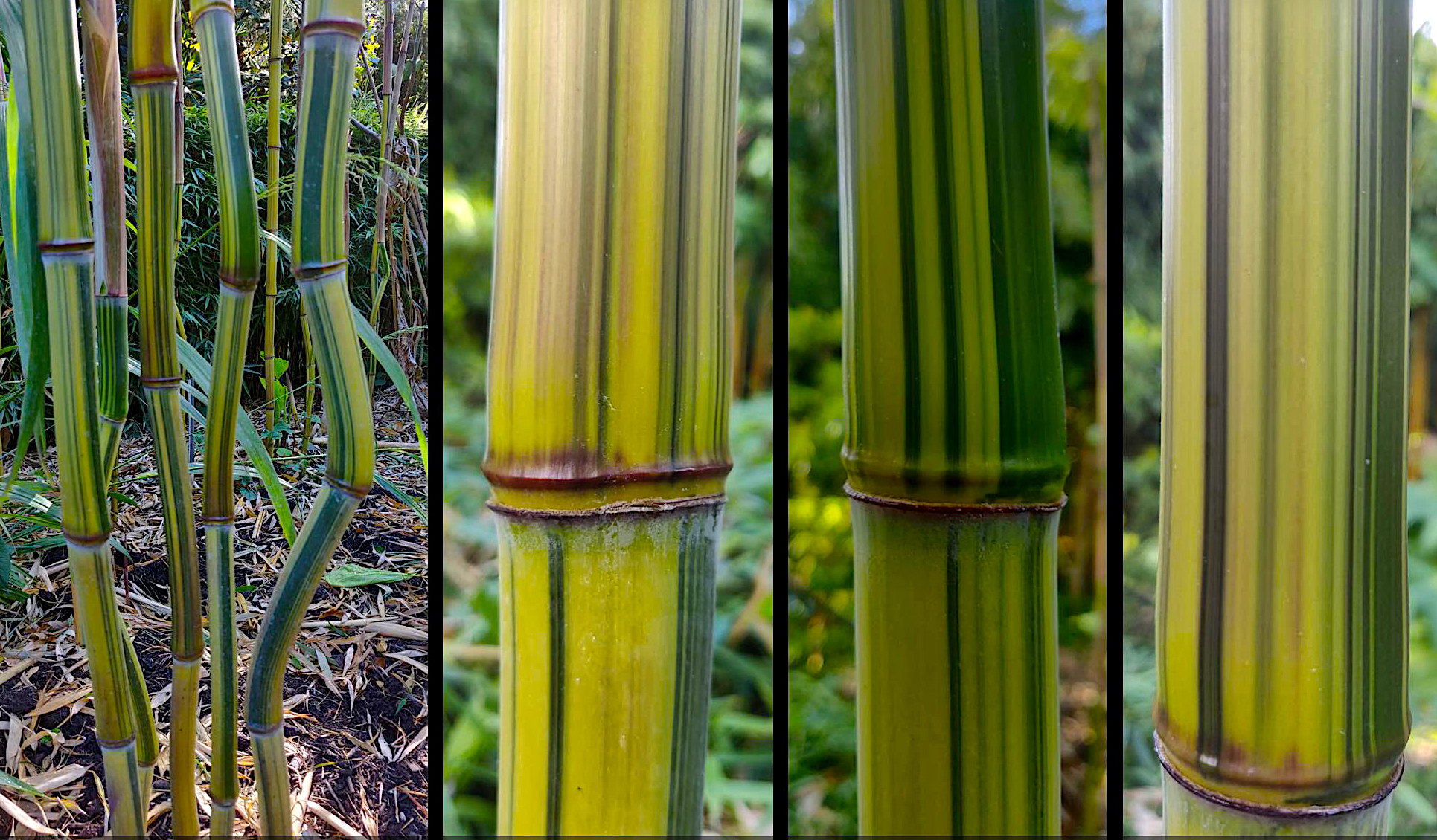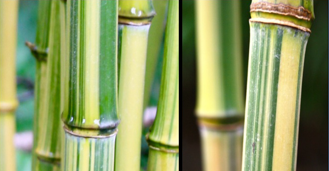 Odmiana Phyllostachys Argus wyróżnia się na tle powszechnej odmiany Spectabilis ze względu na swoje unikalne, wyraźne zielone paski na jasnożółtej łodydze.