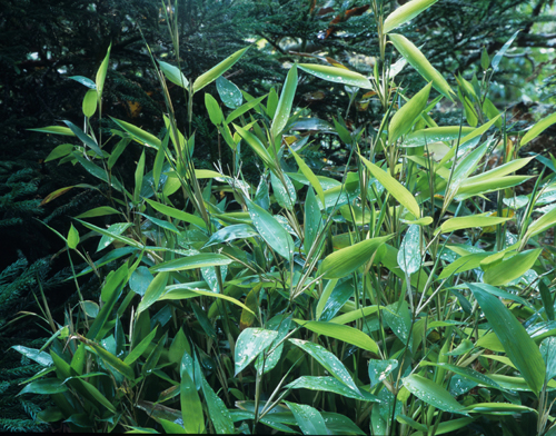 Wolno rosnący bambus okrywowy. Posiada całkowicie zielone liście, które w kształcie przypominają łzę. Najładniejszy kolor ulistnienia posiadają zasadzony w całkowitym cieniu lub półcieniu. Zalecamy przycinanie wiosną liści aby jak największym stopniu się zagęściły. Nadaje się doskonale jako roślina okrywowa do wyższych roślin takich jak drzewa czy bambusy drzewiaste. Można go dowolnie formować przykładowo w niskie murki. Na tarasach lub balkonach można ją sadzić w donicach. Woli lekko wilgotne podłoże ale nie podmokłe.